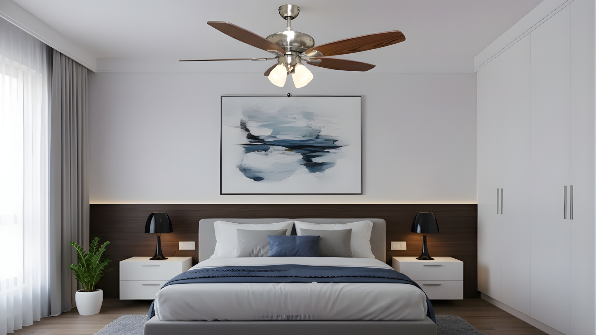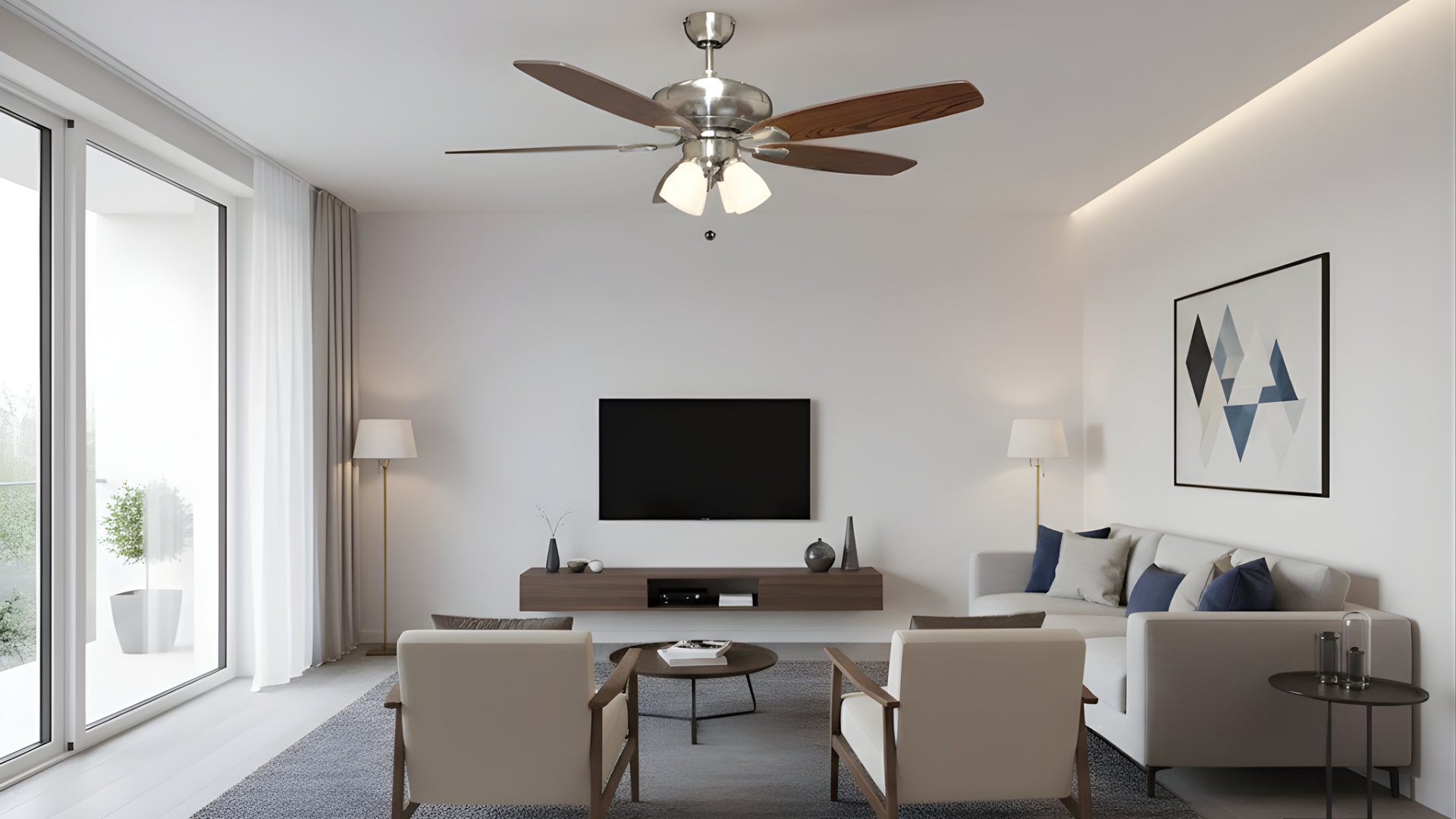 52" 5-Blade UFO Fan NK Silver/Walnut Blades 4-Light Clear Glass LED Kit