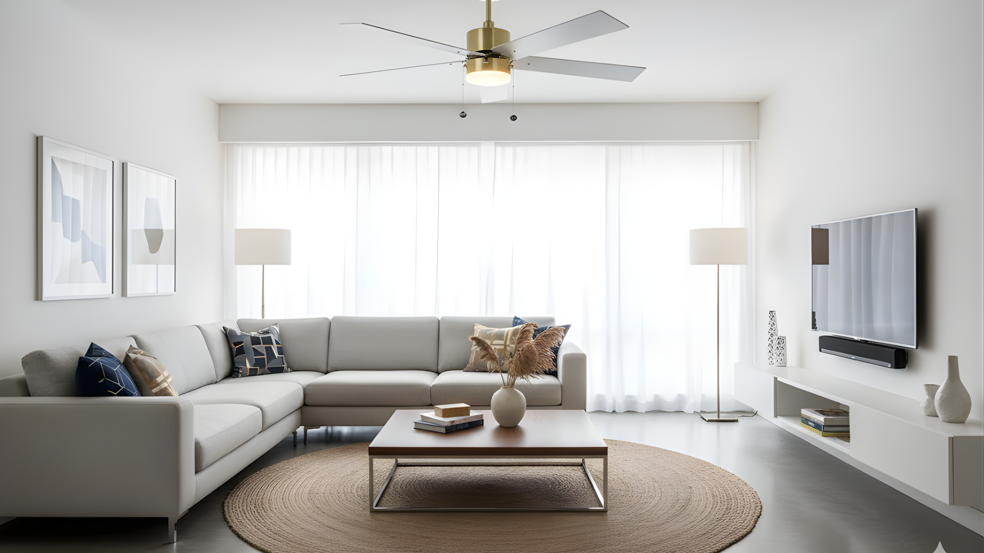 5-Blade 52" CG Modern Cylinder Fan White Blades Pull Chain 3K, 4K, 5K