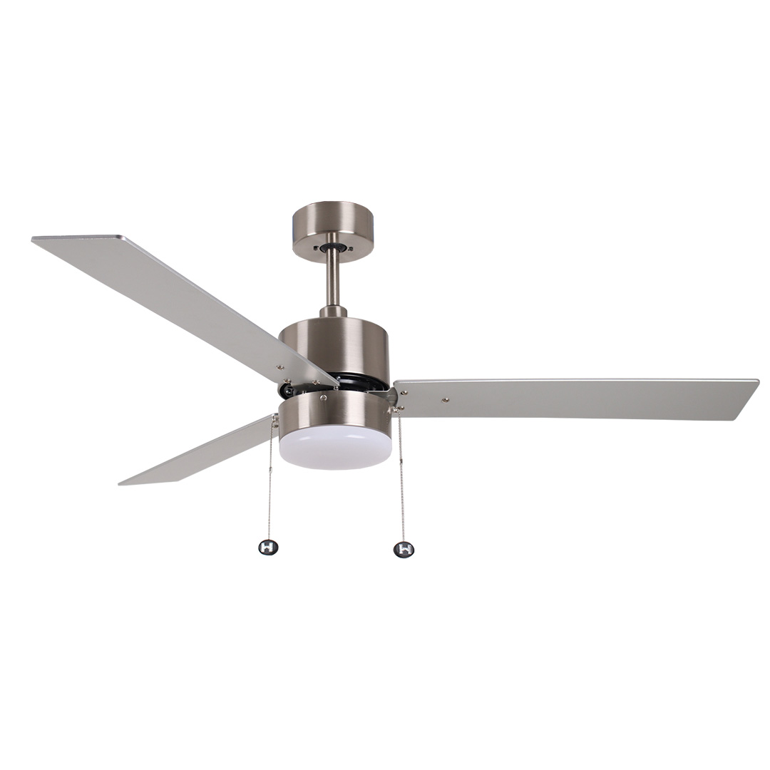 3-Blade 52" NK Modern Cylinder Fan Silver/Walnut Blades Pull Chain 3K, 4K, 5K