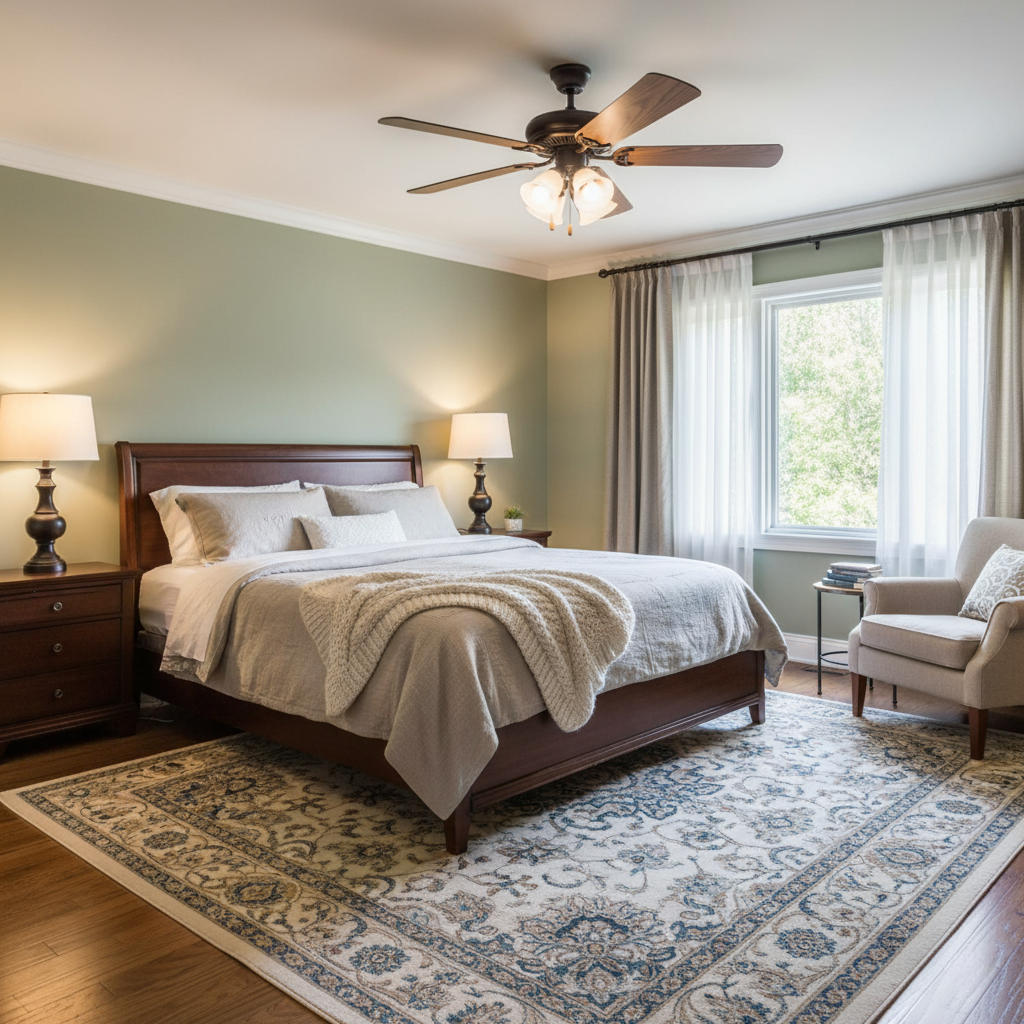 52" Rubbed Bronze indoor ceiling fan with reversible oak/walnut blades